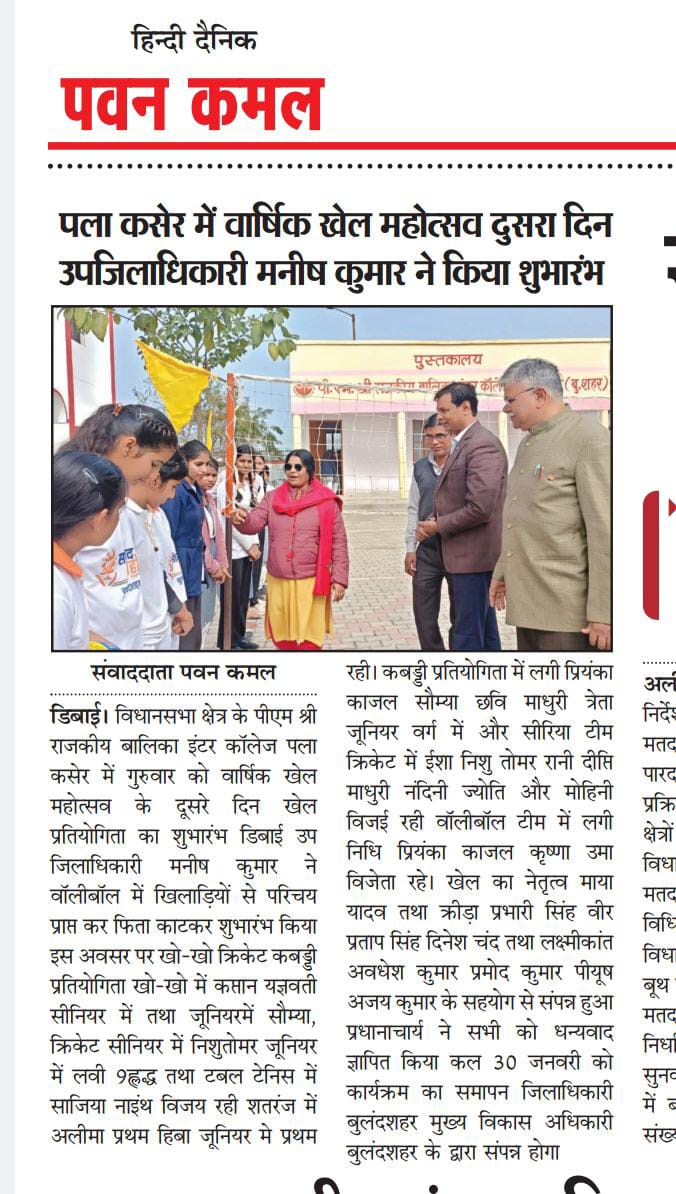 पला कसेर वार्षिक खेल महोत्सव: दूसरे दिन छात्राओं ने दिखाया दम, SDM ने बढ़ाया उत्साह Click Here...